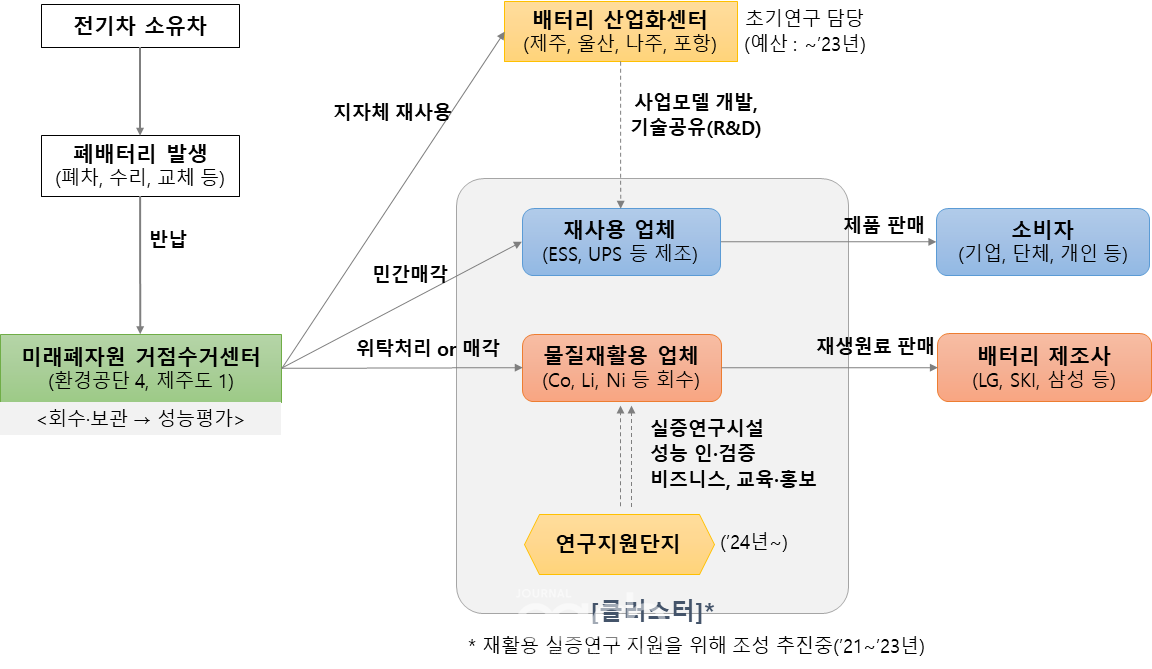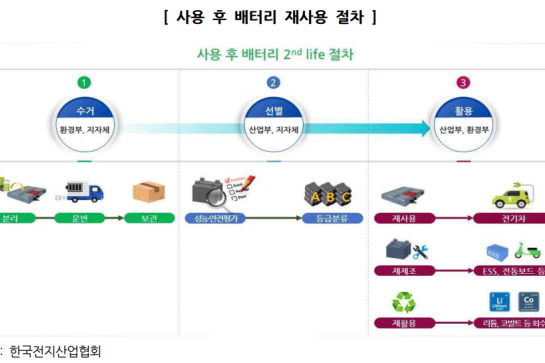 폐배터리의 재활용 과정은 크게 세 가지 단계로 나눌 수 있습니다. 첫 번째는 수집 단계입니다. 이 단계에서는 폐배터리를 다양한 출처에서 수집합니다. 두 번째는 선별 단계로, 이 단계에서는 수집된 배터리를 검사하여 재사용 가능한 배터리를 선별합니다. 마지막으로 활용 단계에서는 선별된 배터리를 다양한 분야에 재사용합니다. 예를 들어, 에너지 저장 시스템(ESS)이나 다른 산업 분야에서 활용될 수 있습니다.
