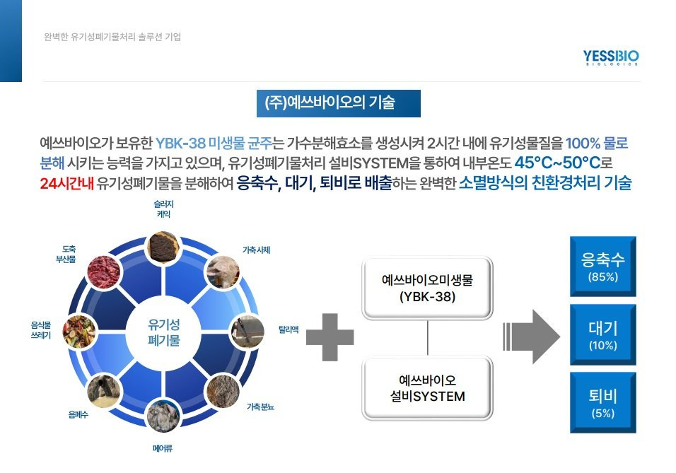미생물 처리 기술은 다양한 분야에서 실제로 활용되고 있습니다. 예를 들어, Yessbio라는 회사는 YBK-38 미생물 균주를 이용하여 유기성 폐기물을 100% 액체로 분해하는 시스템을 운영하고 있습니다. 이 시스템은 45도에서 50도 사이의 온도에서 24시간 연속으로 작동하며, 최종적으로 85%의 액체와 10%의 고형물, 5%의 잔여물을 생성합니다.