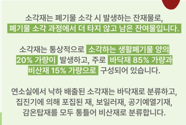 - 매립 : 안정화 처리가 완료된 비산재는 일반 매립장에 매립될 수 있습니다. 이때, 비산재의 용출성을 감소시키기 위한 추가적인 처리가 필요합니다.
